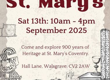 At St Mary's Coventry we enjoy a rich 900 year history and this smaller church on the edge of town has a few unique treasure that we like to show people over the Heritage weekend. Including a rare Ringing Post and a chalice from the time of Queen Elizabeth I. We love meeting new people and sharing our story with others. Come and feel the stone where people use to sharpen their arrows and have a go at soft archery yourself, hear the bells and pull the ropes, explore the grounds and see what special things you can find.